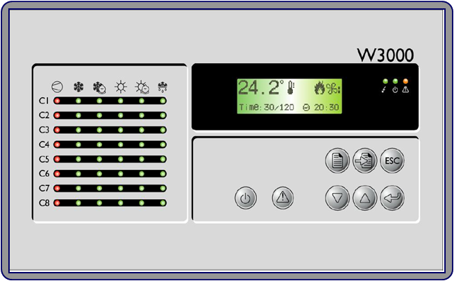 2. 機組控制與運行管理:先進的W3000 微電腦智能控制系統(tǒng),內置克萊門特特殊設計的控制算法,更加突出機組的節(jié)能性和可靠性:FIFO 壓縮機運行時間均衡功能,延長整機壽命;自動負荷調整輸出功能,節(jié)能節(jié)電;通過與壓縮機的減載系統(tǒng)相配合,實現25-100%無級調節(jié);運行參數調整和設定,適應不同環(huán)境應用;溫度壓力保護采用模擬量測量,可以預測預防故障發(fā)生,增加可靠性。